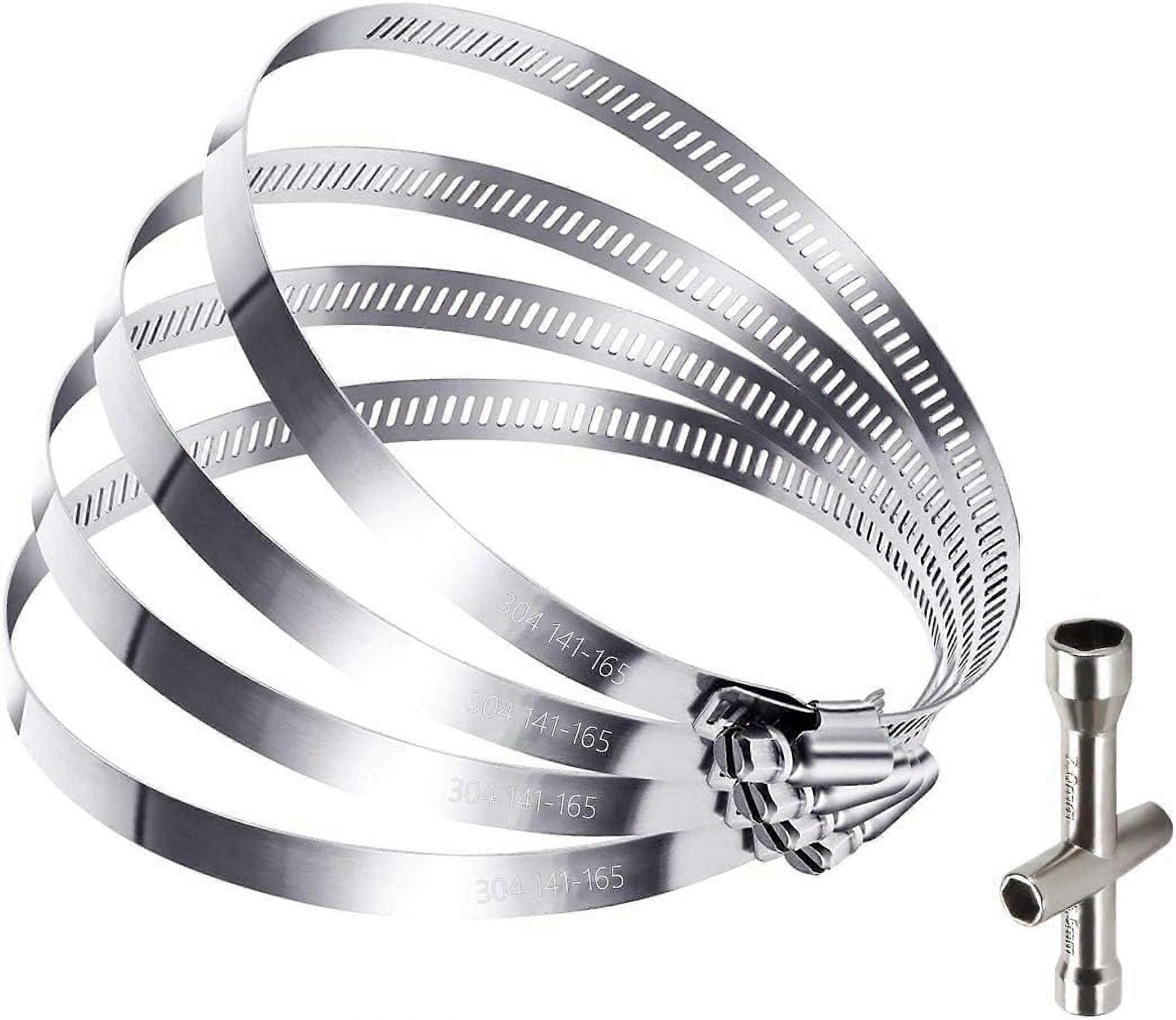6" Hose Clamps 150mm, Adjustable 141-165mm, 304 Stainless Steel, 4 Pcs, Socket Wrench for Fastening Pipes
