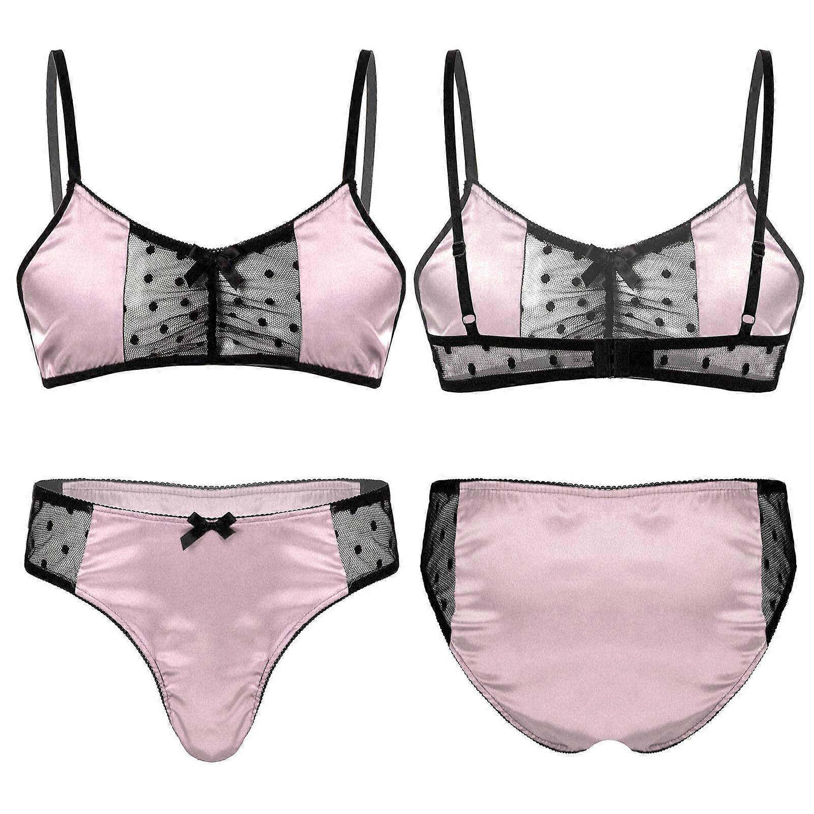 Men's Bra Tops with Girly Panties 2Piece Sissy Shiny Satin Cross Dresser Set