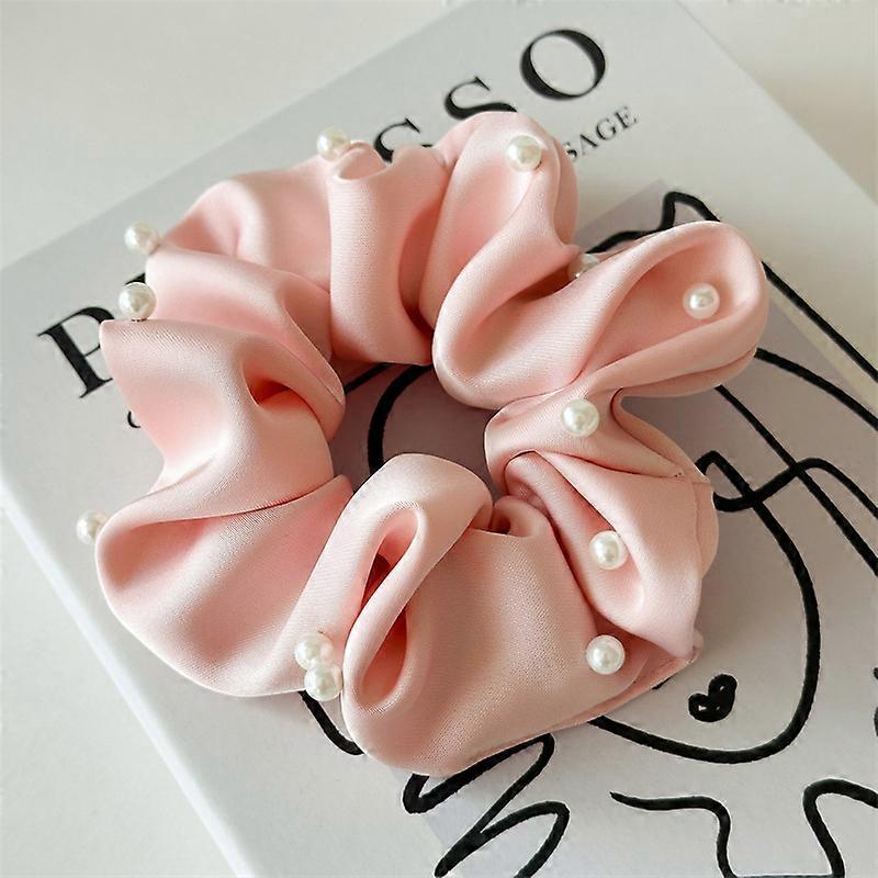 Vintage Satin Scrunchie Artificial Pearl Elastic Hair Bands Solid Color Women Headwear Ponytail Ties Rope Girls Hair Accessories