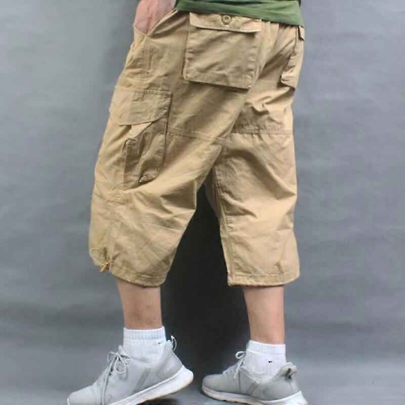 Men Cargo Pants Half Trousers Shorts Casual Cotton Multi Pocket Loose Straight