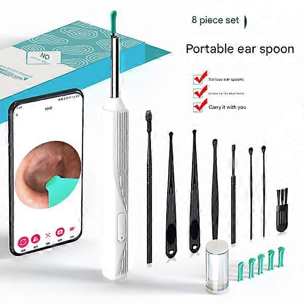 8pcs 1080P Wireless Ear Cleaning Otoscope Ear Cleaning Tool Black 8pcs Set White