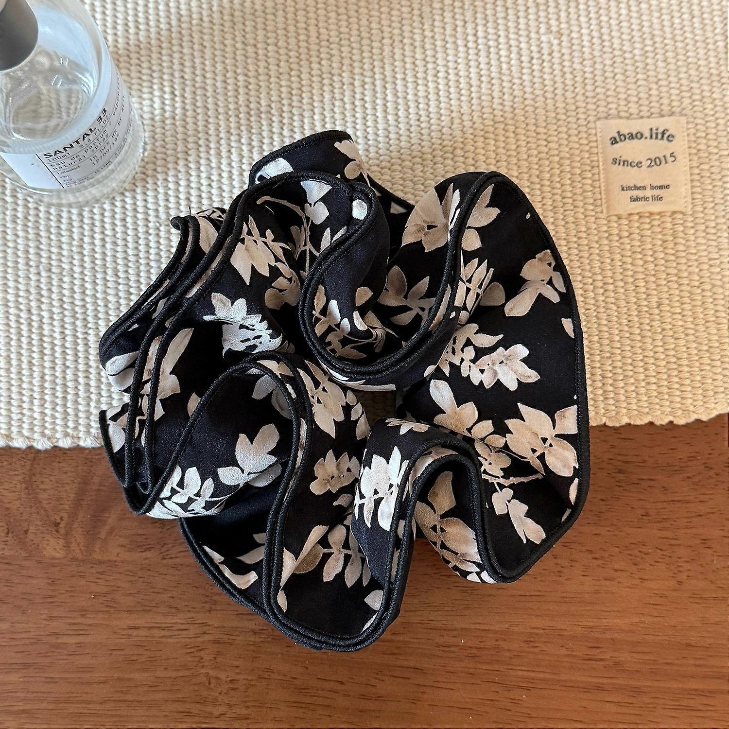 Women's Black White Floral Scrunchies Ruffled Hair Bands Ponytail Holder Tie Hair Hoop Children Girls Hair Accessories