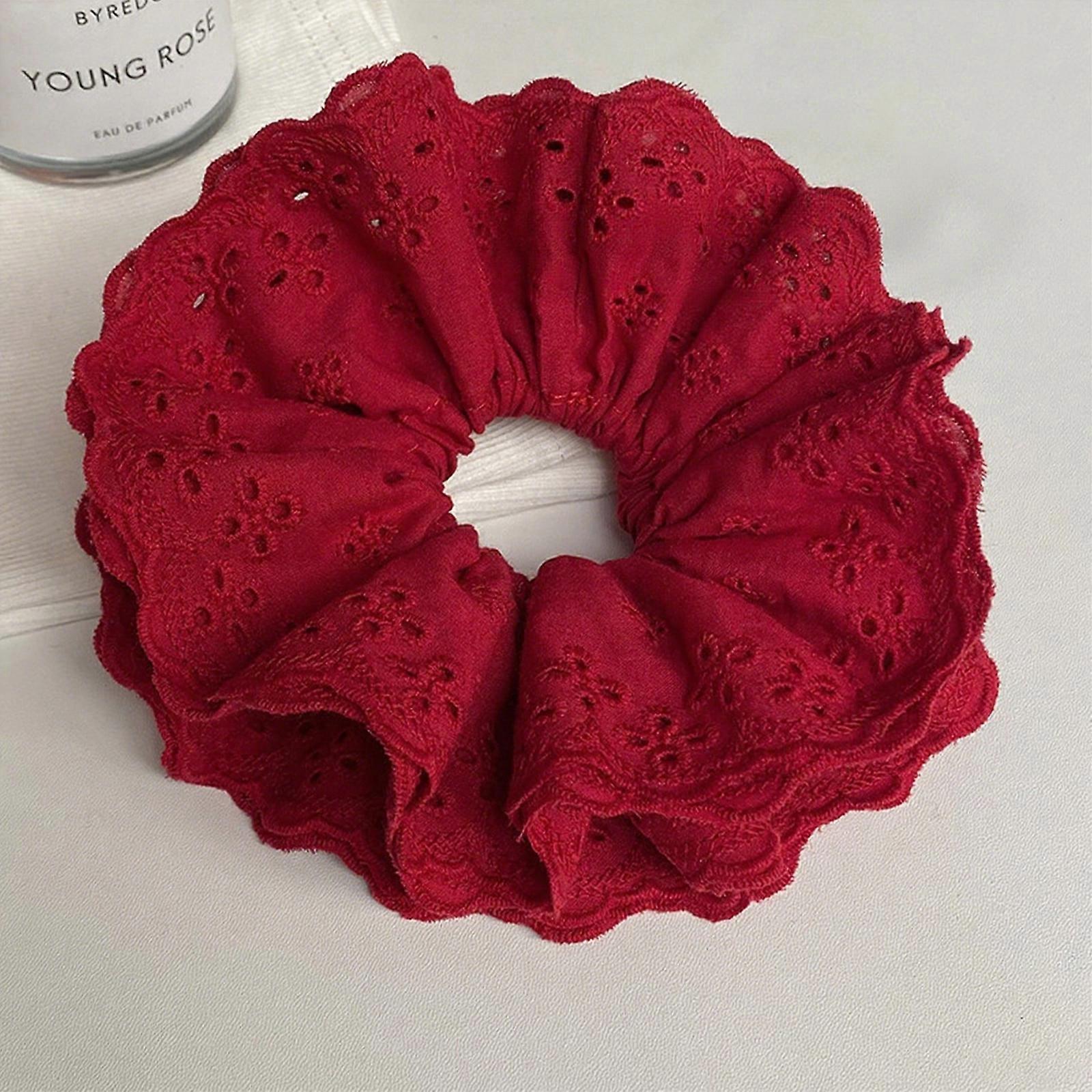 Atmosphere red cotton fabric hollow four-layer large intestine scrunchie, temperament burgundy women's hair ornament