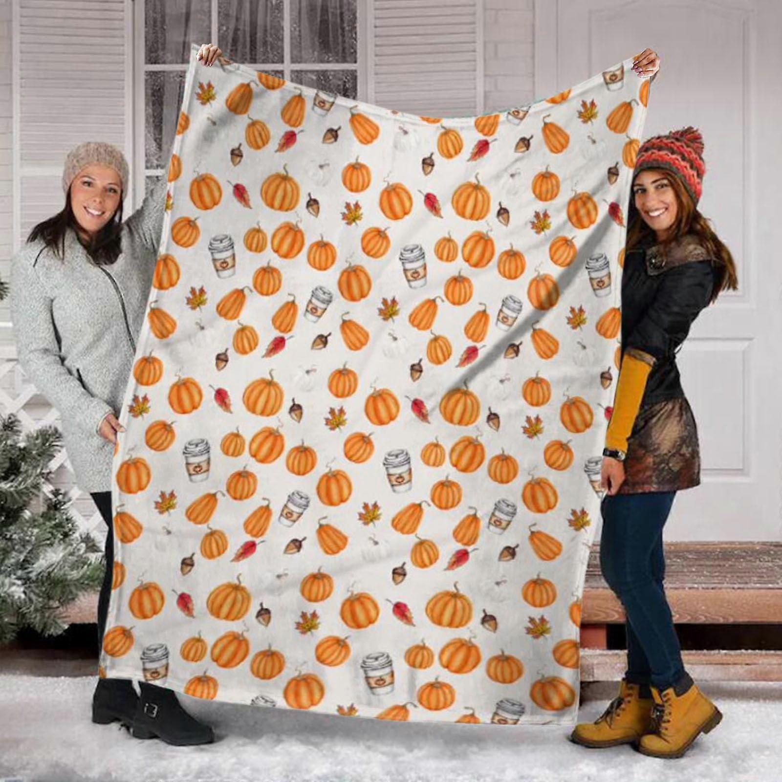 Halloween & Fall Kitchen Decor - Flannel Non-Slip Mat, Pumpkin Maple Leaf Throw Blanket - Compatible with Thanksgiving, 4th of July Outdoor Use
