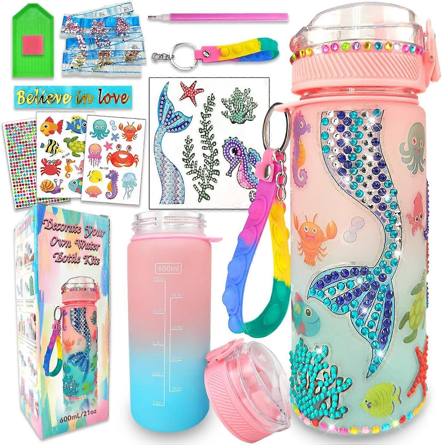Changmaius Decorate Your Own Water Bottle Kits for Girls 4-10, Mermaid Gem Diamond Painting Crafts, Arts & Crafts Gifts, Compatible with Fun