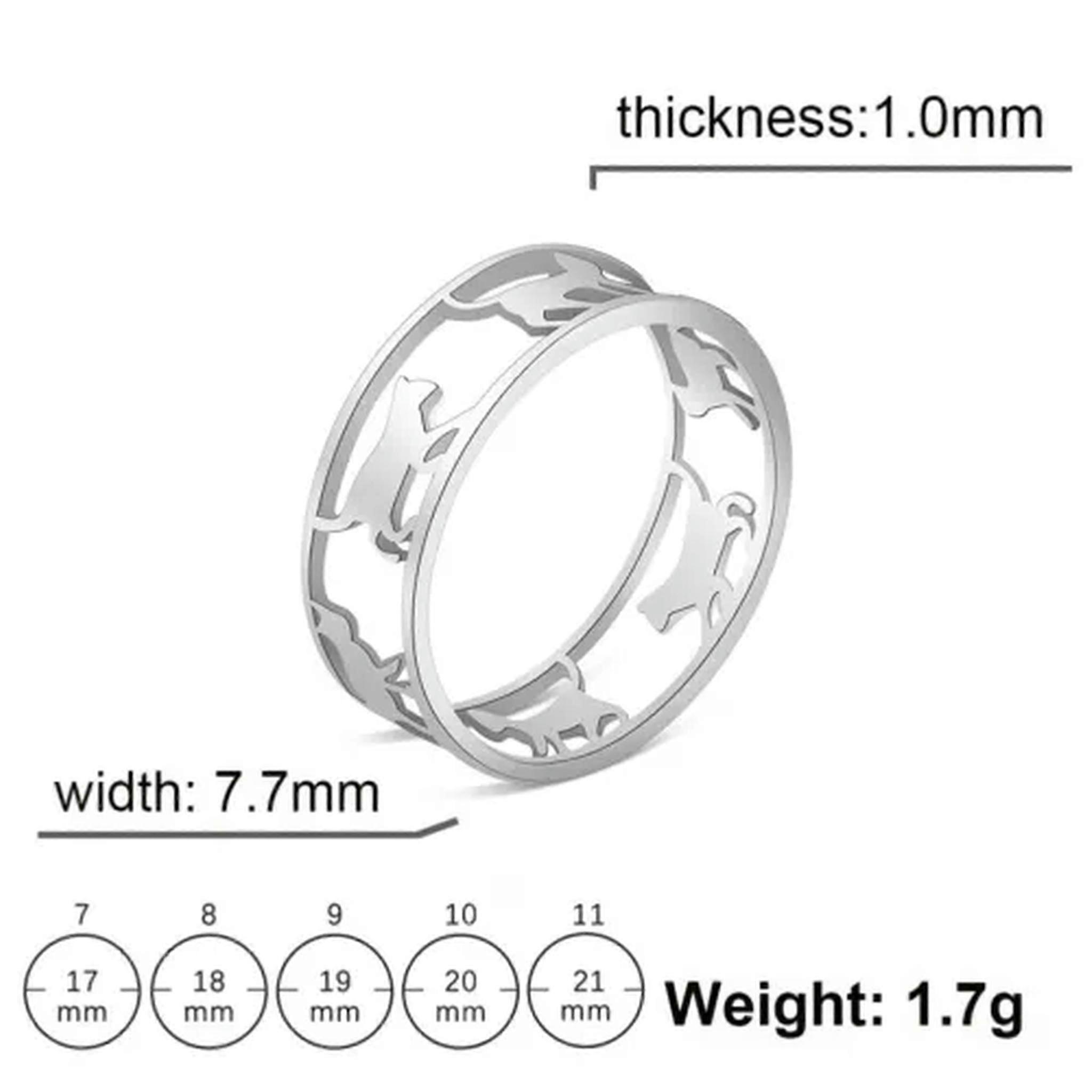 RSAMD Hollow Walking Cats Women's Ring Stainless Steel Animal Cute Kitten Finger Rings-9-Steel