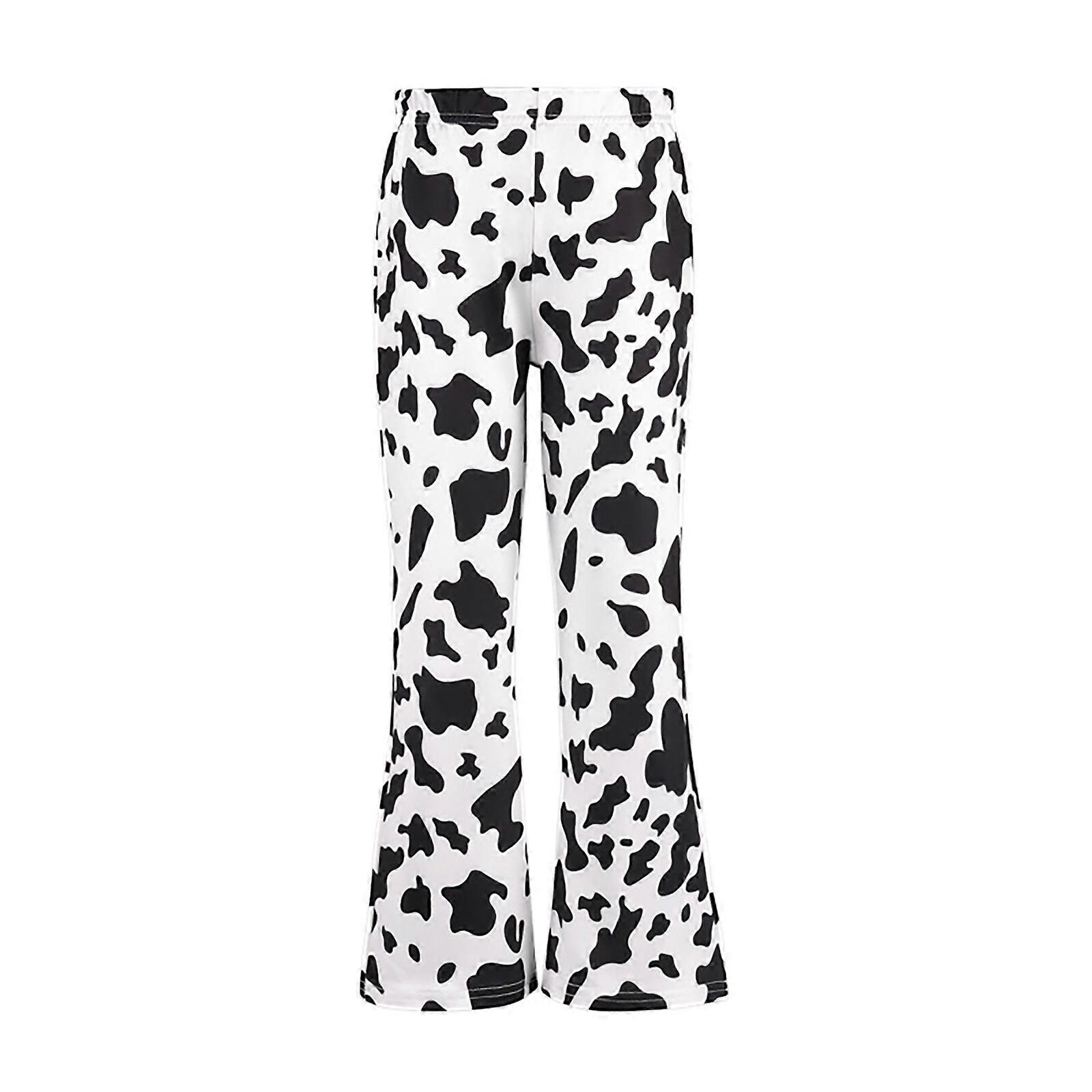 Girls Cow Print High Waist Wide Leg Jeans Casual Long Pants Bell Bottom Trousers