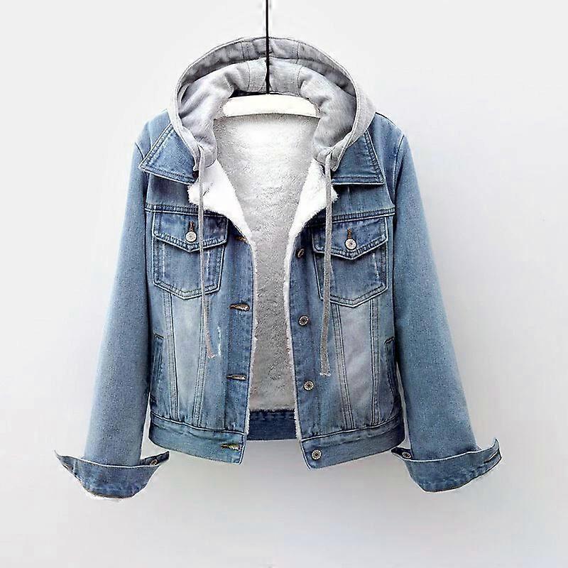 Womens Fleece Lined Denim Jacket Coat Thicken Hooded Winter Warm Casual Vintage
