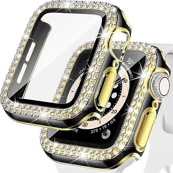 Bling Glass+ Protection for compatible with Apple Watch 45mm 41mm 40mm 44mm 42mm 38mm, Diamond Bumper + Screen Protector for iWatch Series 7 9 8 5 6