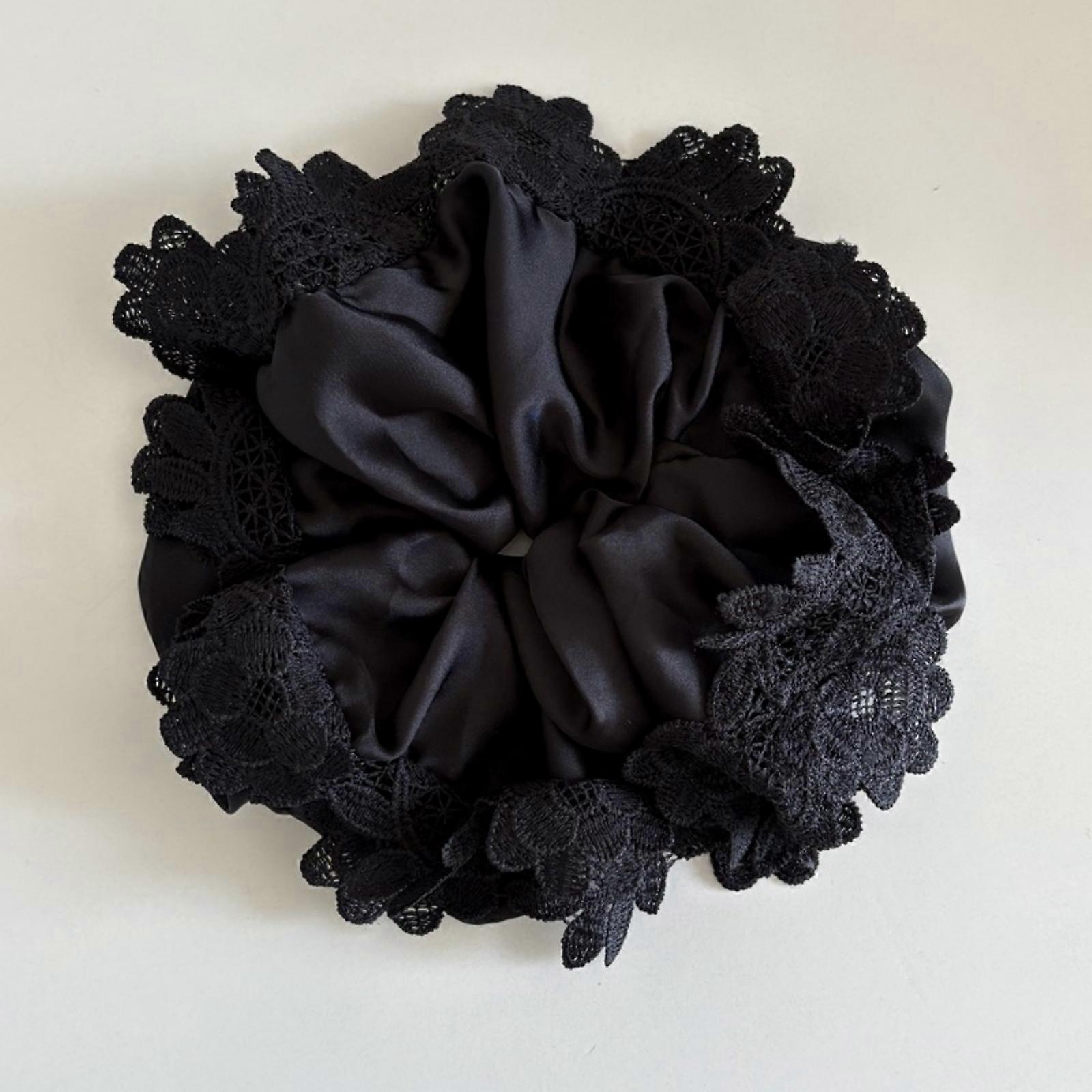 1PC Large Satin Lace Scrunchies, Oversized Autumn Winter Hair Ties, Black White Elegant Hair Accessories For Women,