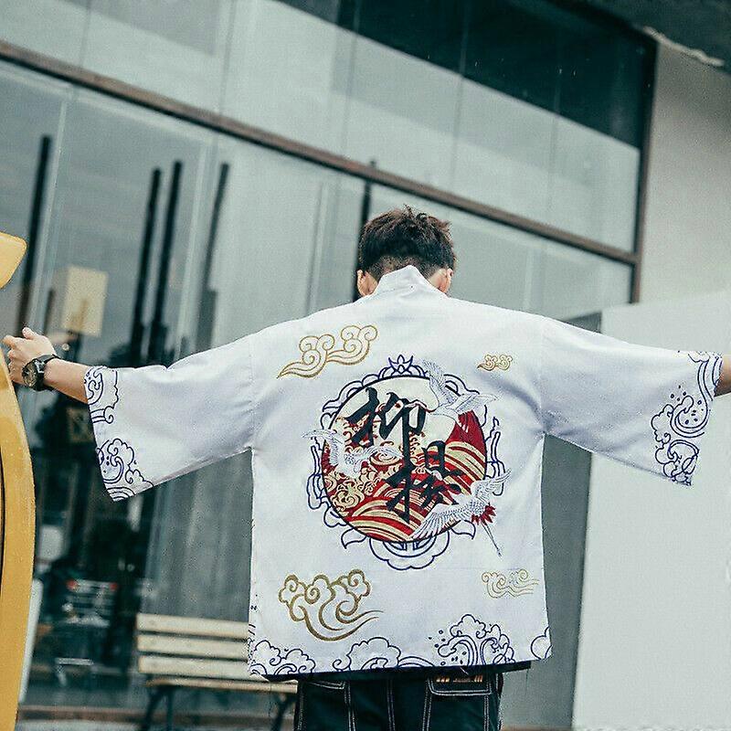 Men Japanese Kimono Yukata Coat Cardigan Top Jacket Bathrobe Retro Outwear White