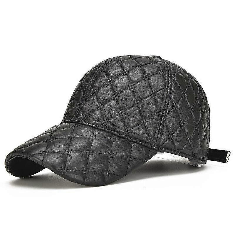 Cadet Black Genuine Leather Sheepskin Adjustable Motorcycle Ball Baseball Cap