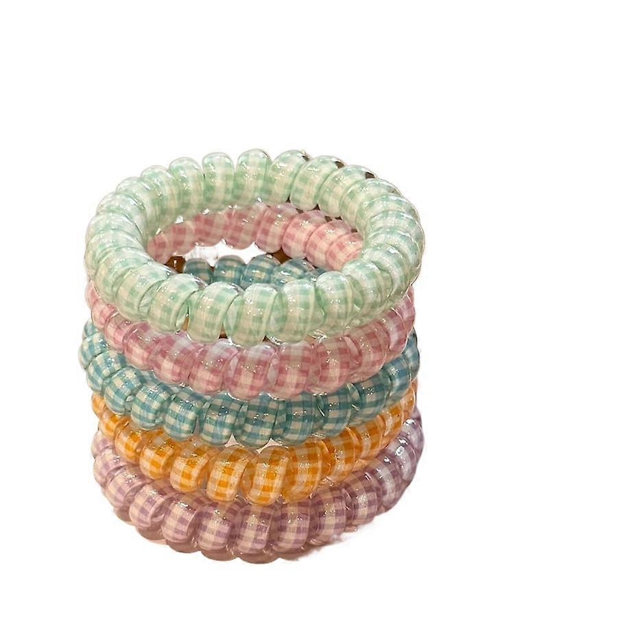 5PC Cute Telephone Line Plaid Candy Color Elasticity Hair Ties Rope for Women Girls Ponytail Holder Korean Hair Accessories
