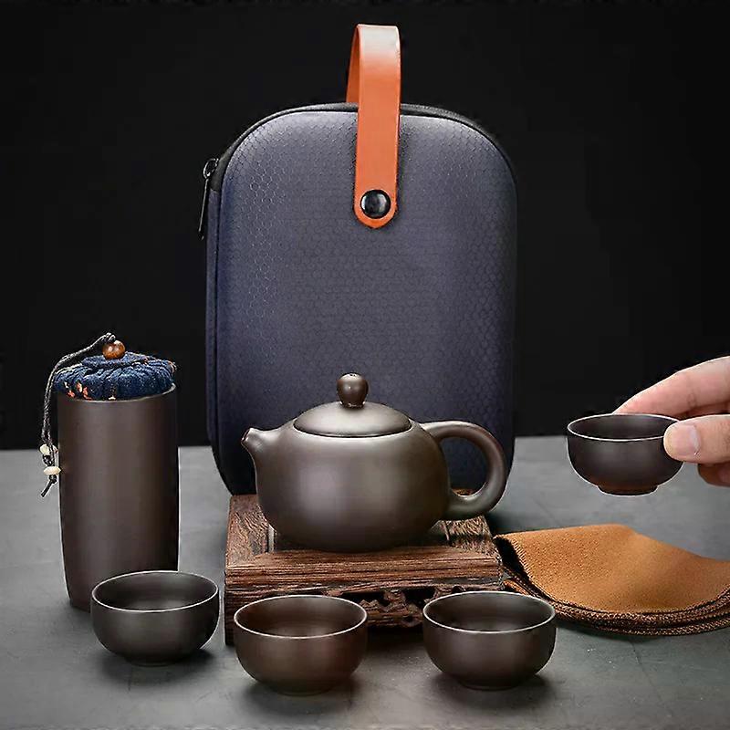 Purple Clay Travel Tea Set Outdoor Portable Kung Fu Tea Set Teas Infuser Teapot Teacup Filter Teas Brewing Utensils Teaware Sets
