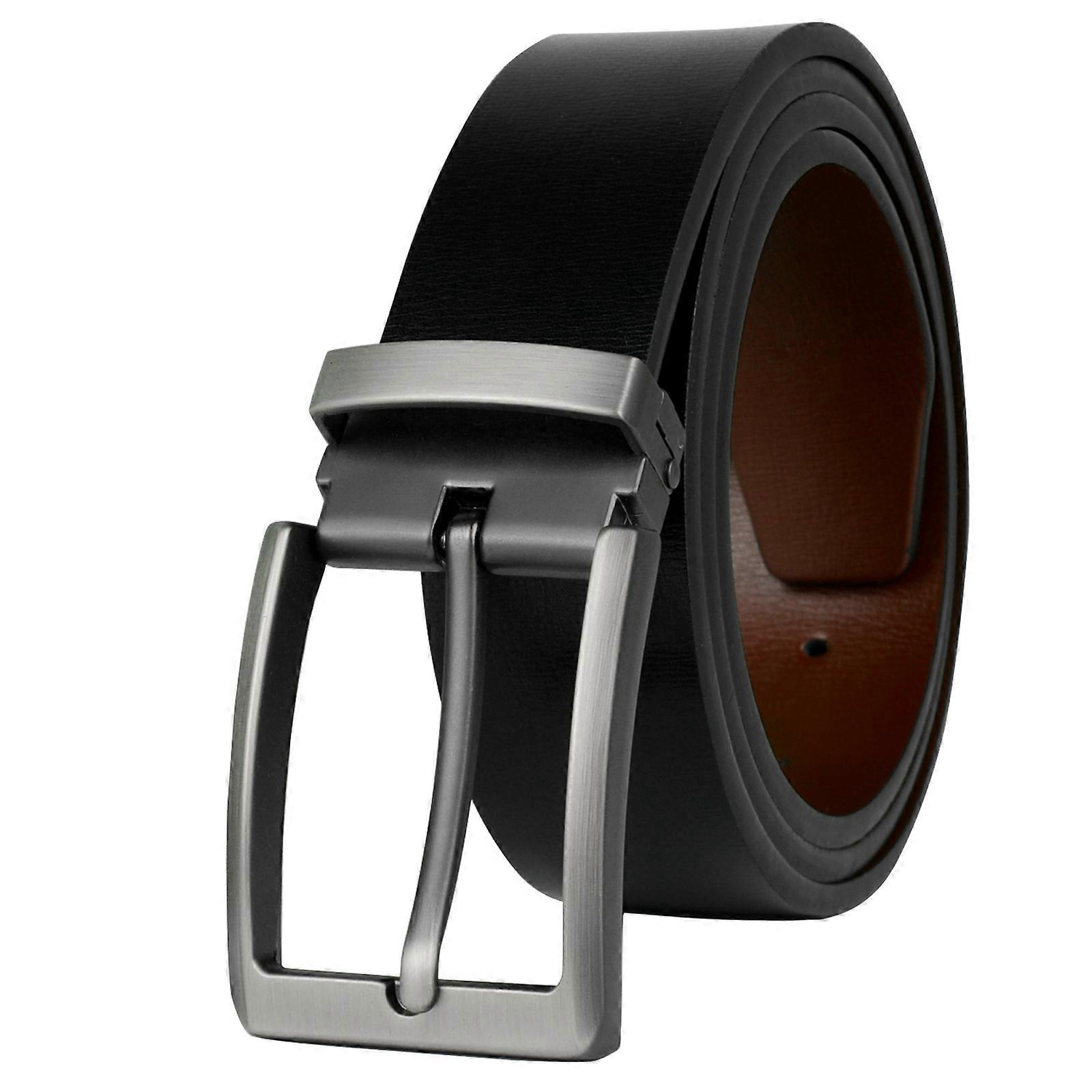 Men Belt Black Leather Cut To Fit 120cm Reversible 2 Color Silver Brown