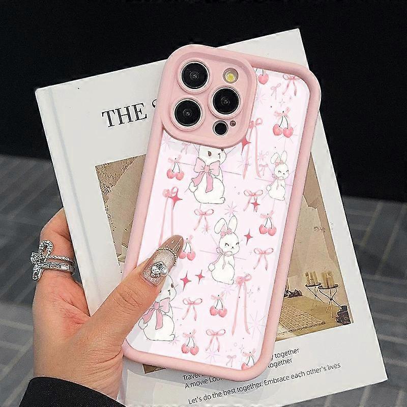 Cute Rabbit & Bow Pattern Phone Case, Decorative Phone Protector Cover, Phone Accessories Compatible with iPhone 11 12 13 14 15 Pro Max, Cas