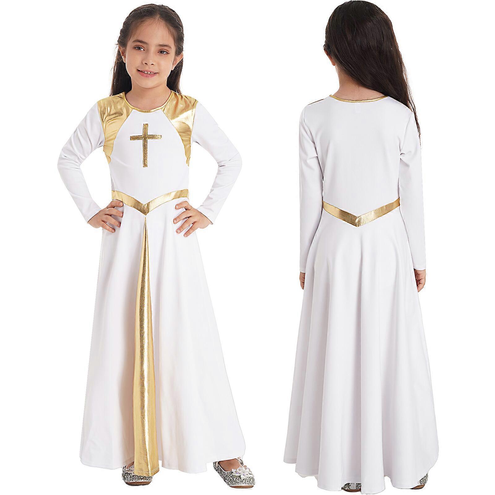 Girls Kids Liturgical Praise Dance Worship Metallic Gold Color Block Long Dress