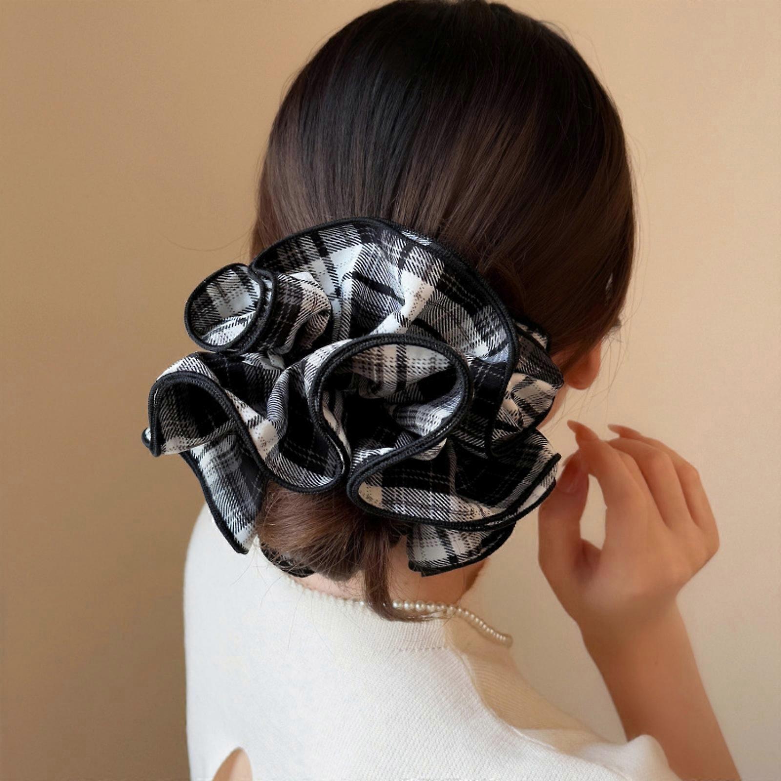 1PC Black and White Plaid Ruffled Scrunchie, Fashionable Hair Accessory for Women, Cute Hair Tie for Daily Wear