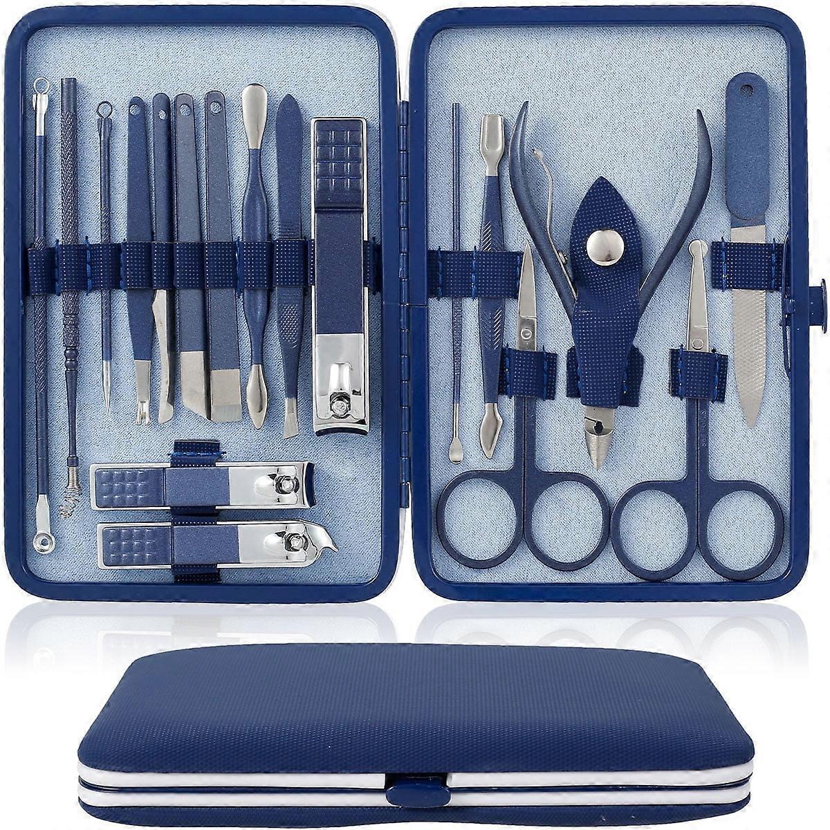 JTWEEN 18 Pcs Professional Nail Care Kit, Stainless Steel Manicure Set with Nail Clippers, Portable Pedicure Grooming Tools for Home & Travel