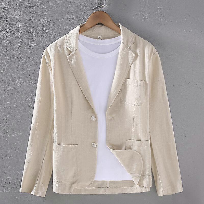 Men Cotton Linen Jacket Casual Two Button Suit Blazer Formal Business Fit Jacket