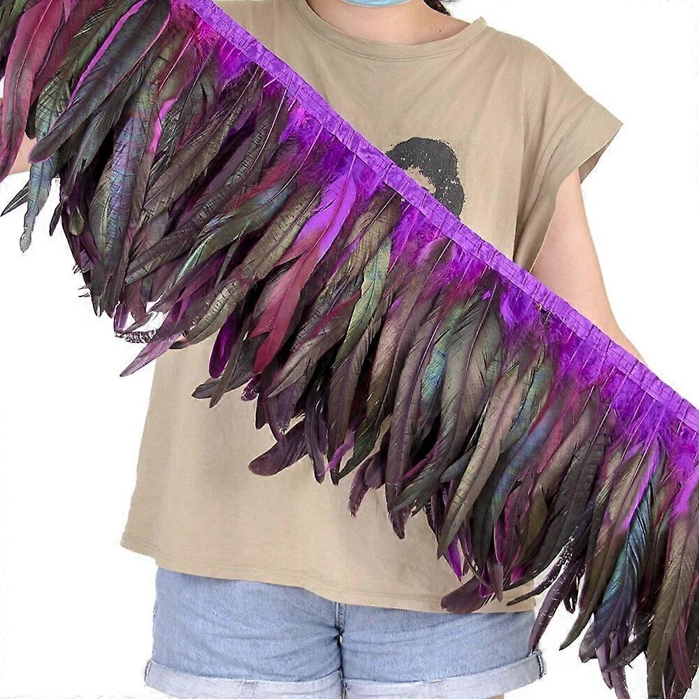 1M Gold Silver Rooster Tail Feather Ribbon Crafts 25-30cm Natural Feathers Fringe for Wedding Party Clothing Dress Decoration Purple 25-30cm