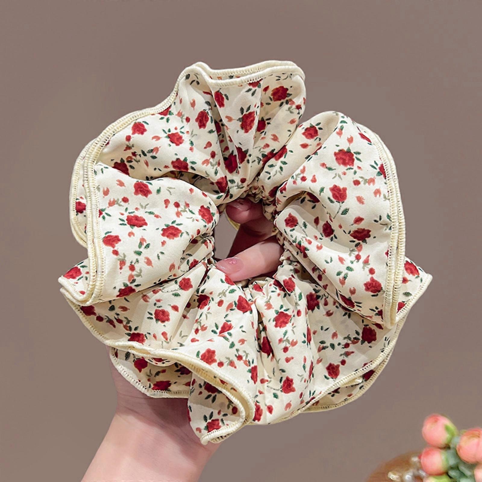 1PC 18cm Large Floral Scrunchies For Women, Vintage Rose Print Big Hair Ties Elastic Hair Bands Hair Accessories