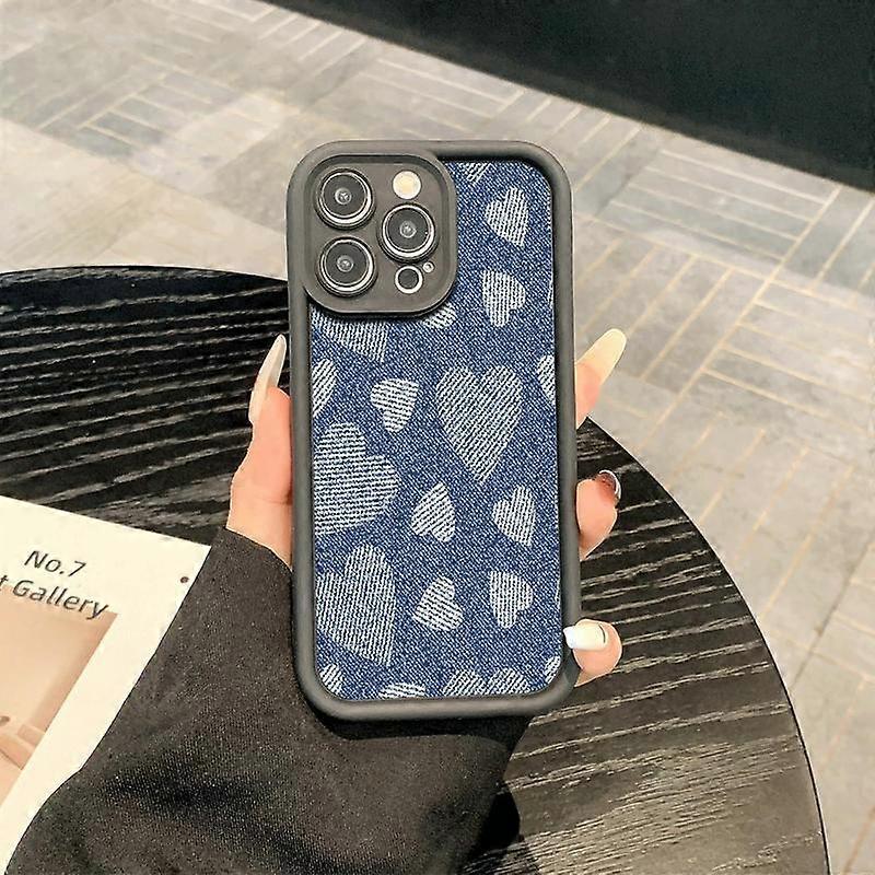 Denim-like Heart Pattern Phone Case, Decorative Phone Protector Cover, Phone Accessories Compatible with iPhone 15 14 13 12 11 Pro Max XS XR