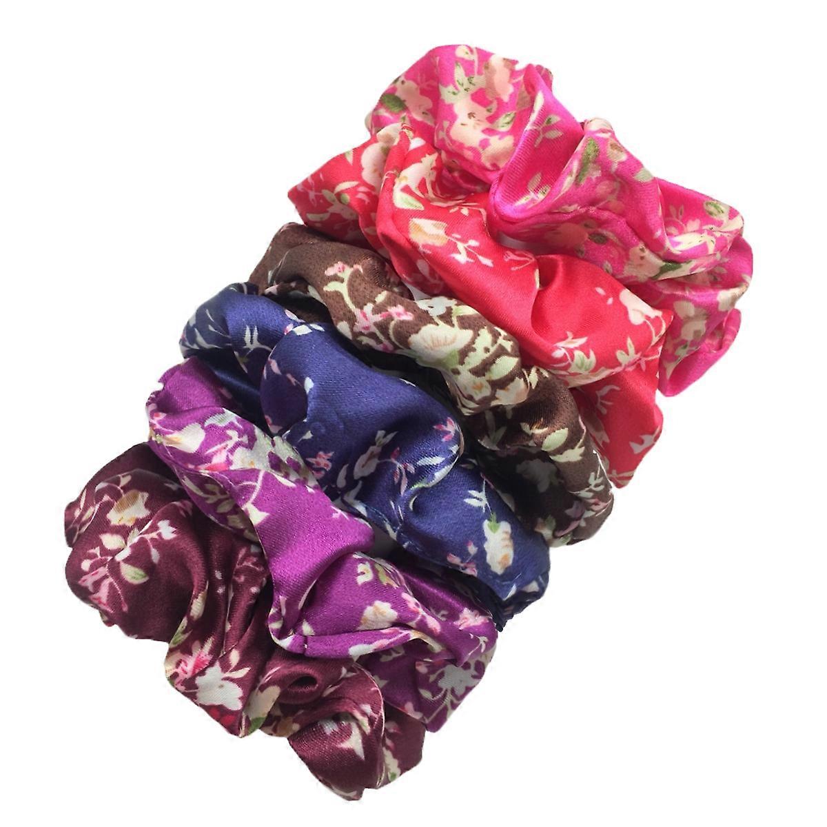 6pcs/lot Satin Scrunchies Elastic Hair Bands Ponytail Holder Ties Rubber Bands Fashion Women Accessories Print Leopard Floral
