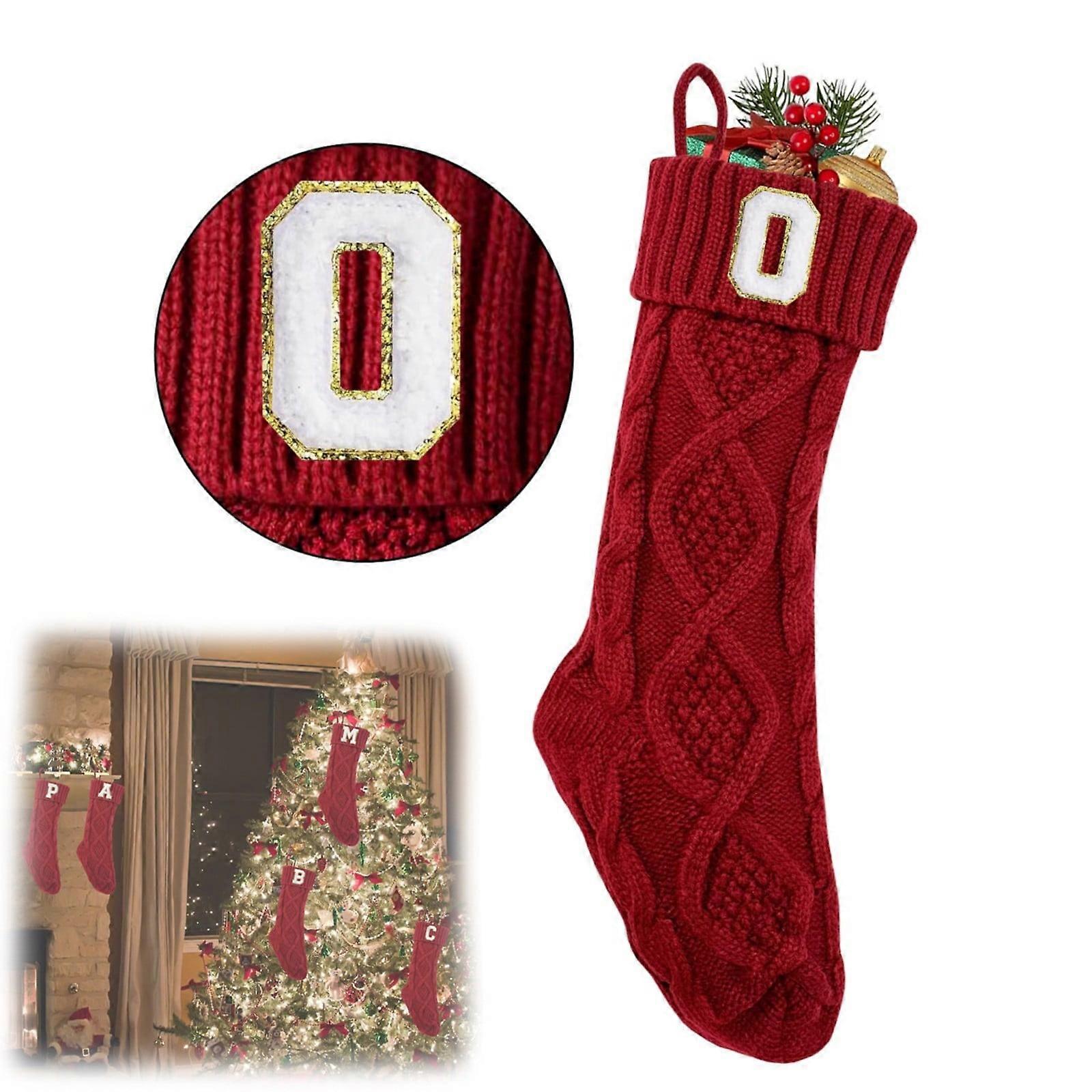 Christmas Stocking with Initial O, 18" Monogram Knitted Xmas Stocking, Red Fireplace Hanging Decoration (1 Pack)