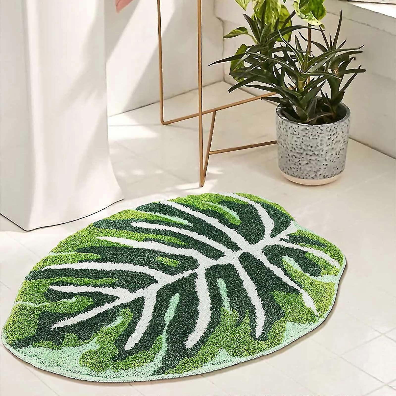 myvepuop Clearance Bath Mat Green Boho Leaves Non Slip Rug Soft Absorbent Washable for Tub Shower Door Decor