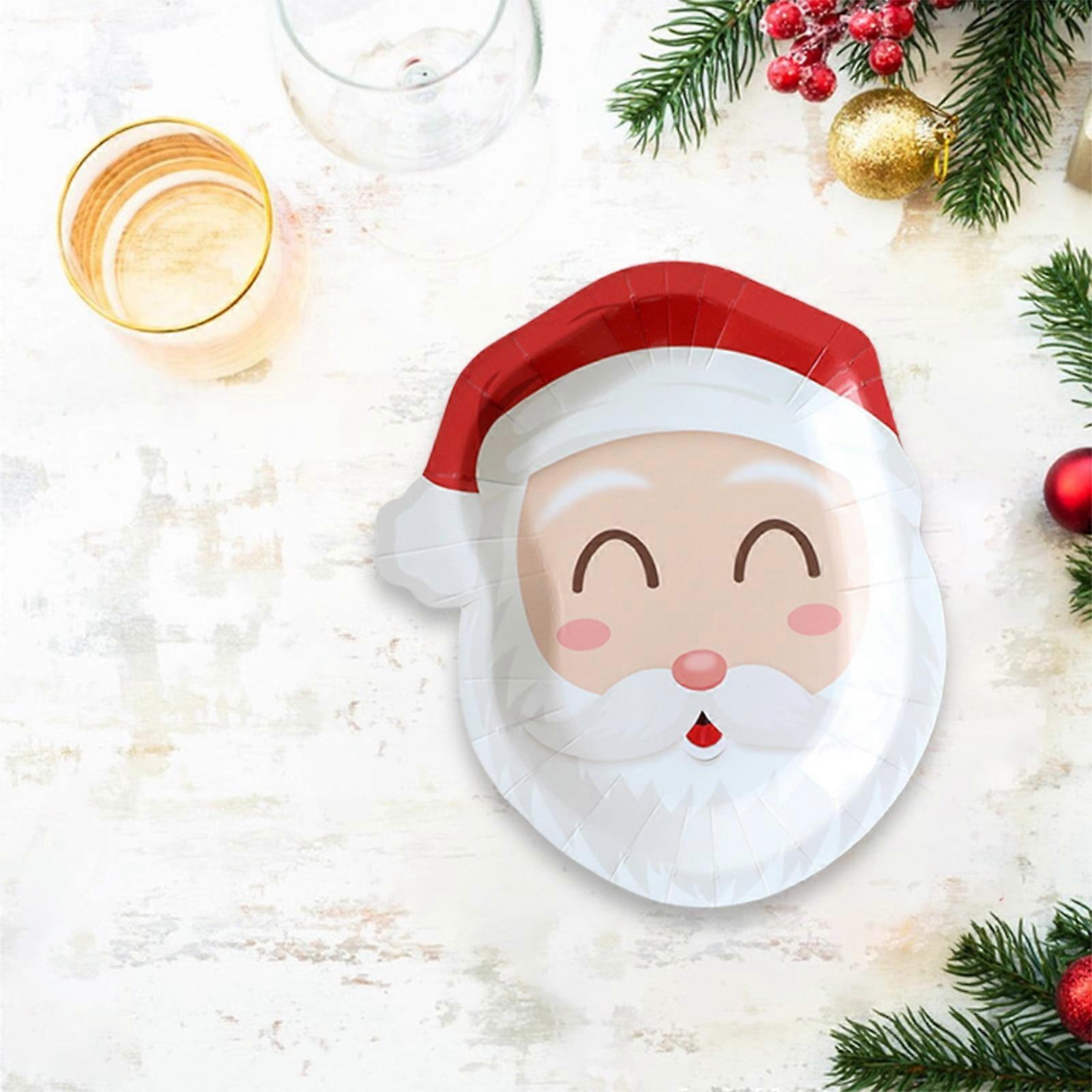 Wadada 10Pcs Christmas Disposable Plates, Red & White Santa Paper Plates for 10 Guests, Party Tableware for Christmas