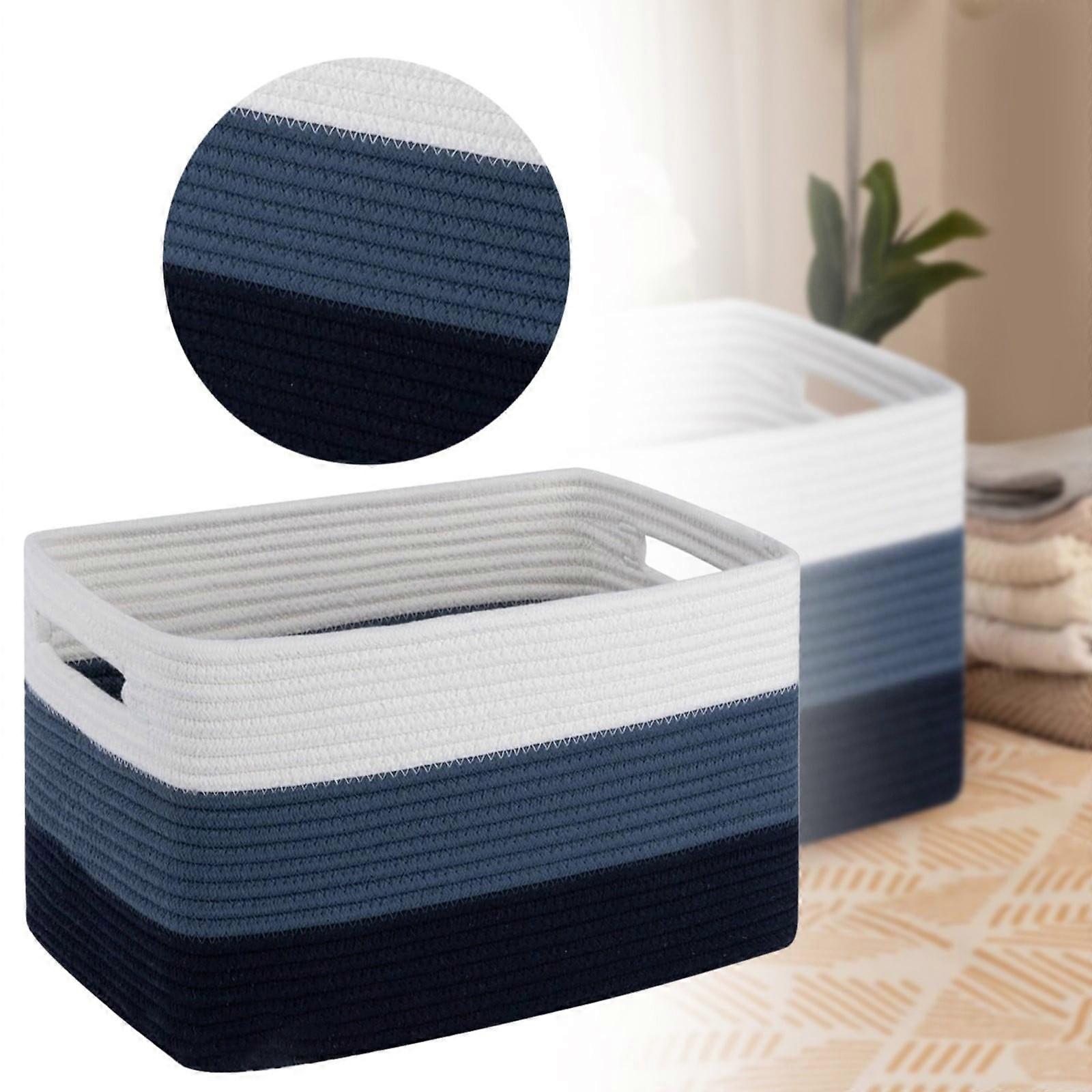 Rectangle Woven Blanket Basket, Cotton Rope Storage Basket for Toys, Dirty Clothes, Laundry, Nursery, Magazine & Decorative Use