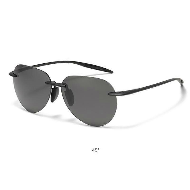 Pilot Rimless Polarized Sunglasses For Men Sunshade Driving Trendy Black Glasses