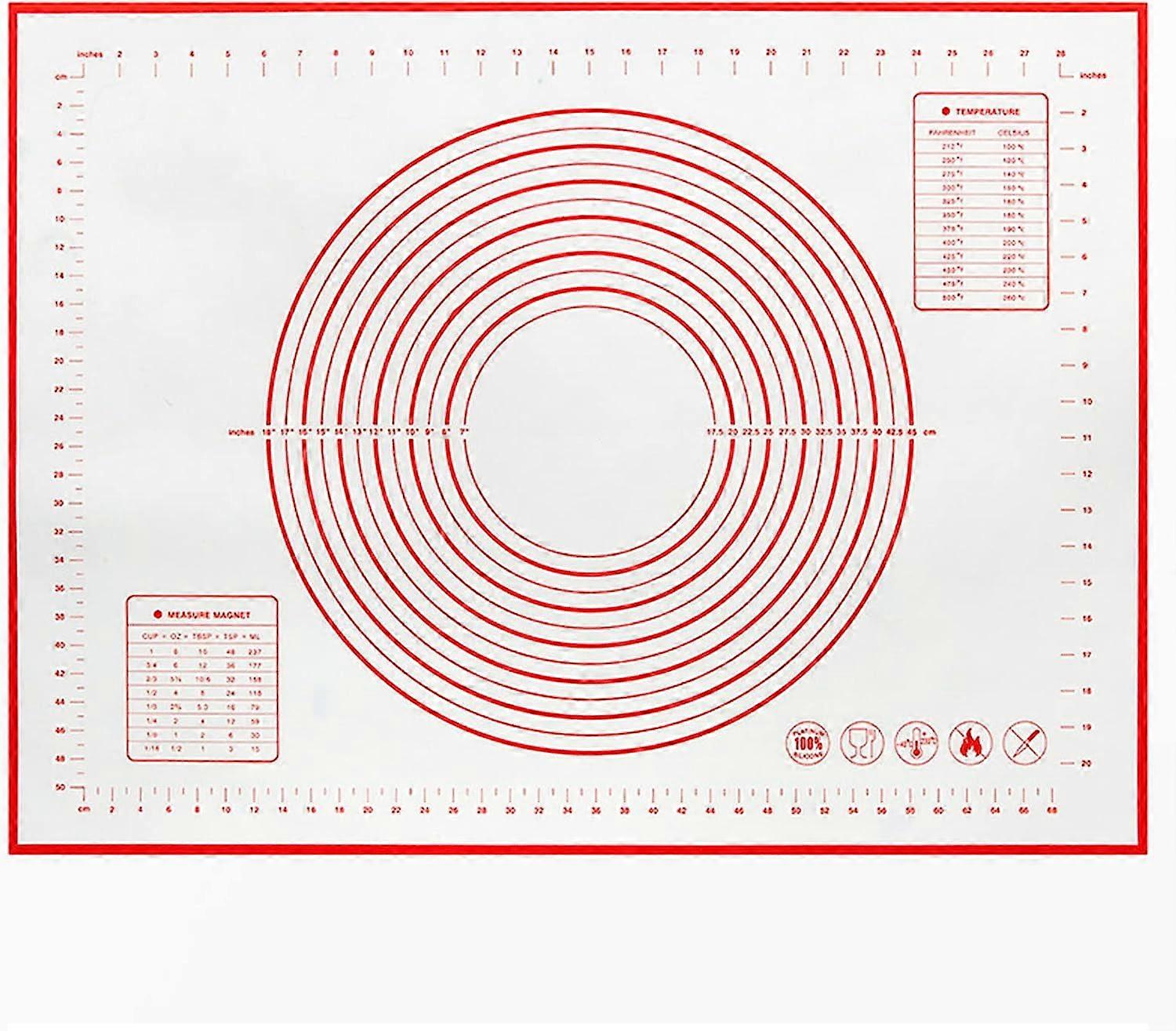 Silicone Baking Mat 24"x32" with Measurements, Non-Stick & Non-Slip, Compatible with Oven, Pizza, Pies, Bread, Cookies (Red)