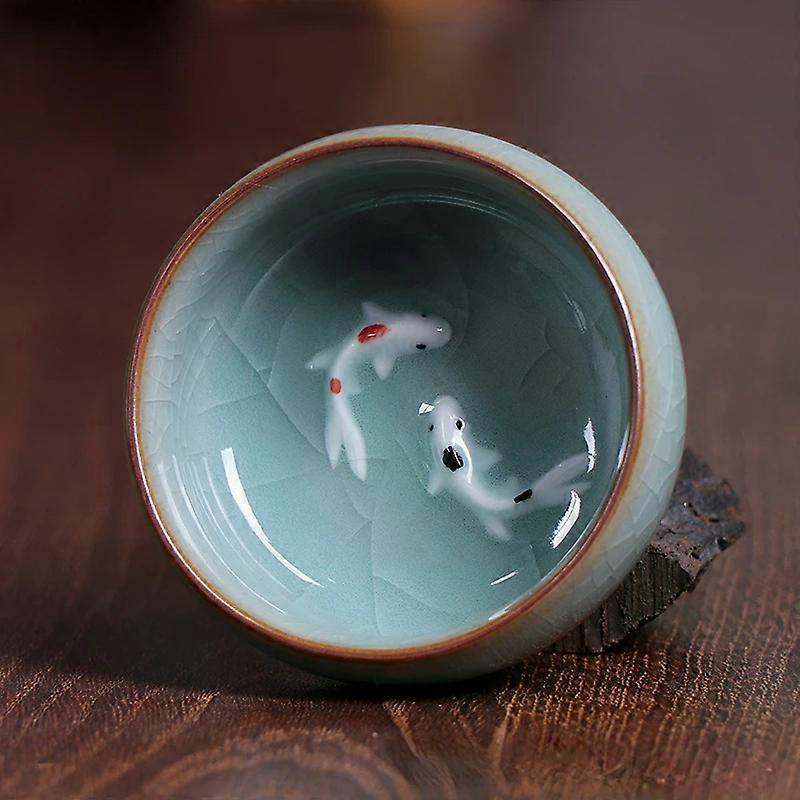 60ml Crackle Golden Fish Celadon Porcelain Teacups Delicate Longquan Tea Cup Bowl Kungfu Serviceable Chinese Tea Cup Tea Making