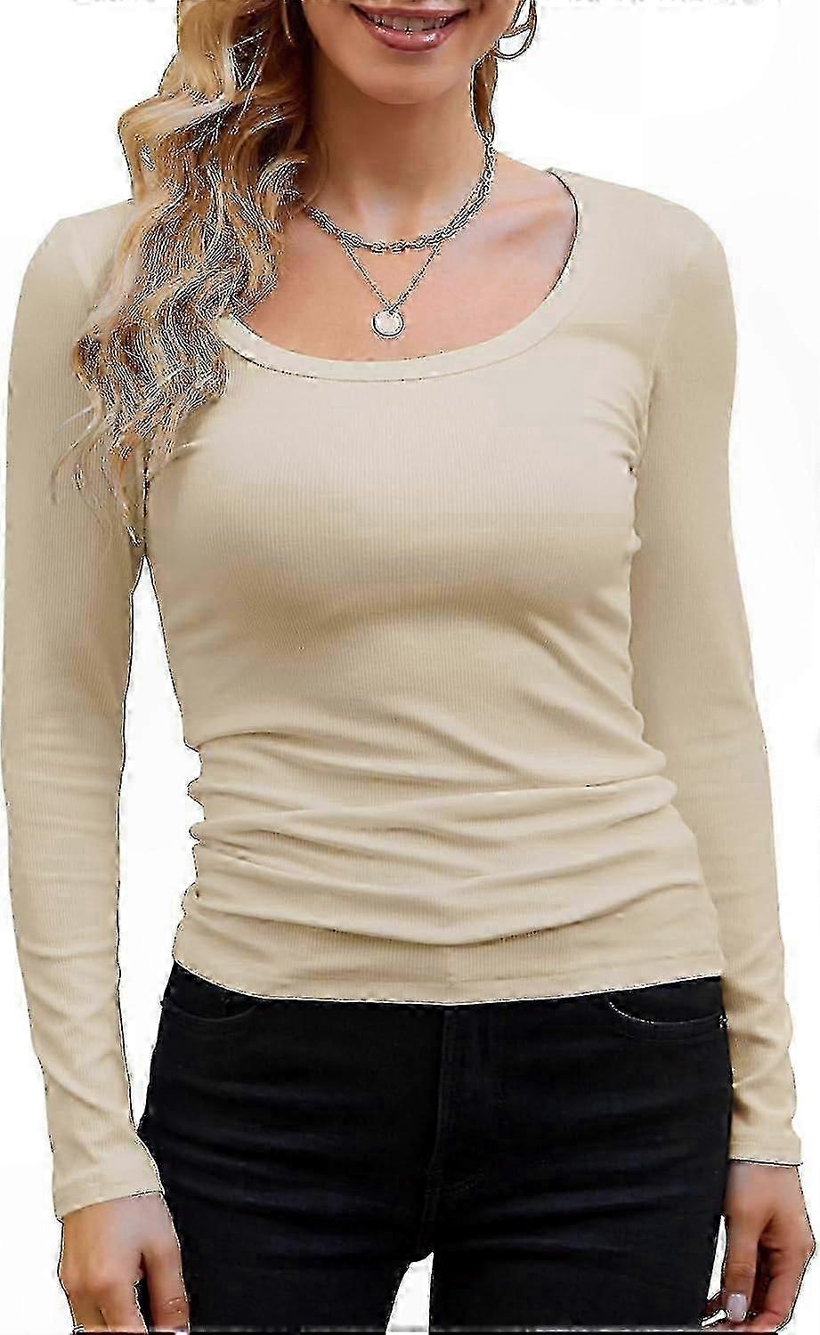 Women's Ribbed Knit Long Sleeve Shirts With Scoop Neck Slim Fit Casual Tops Basic Tees