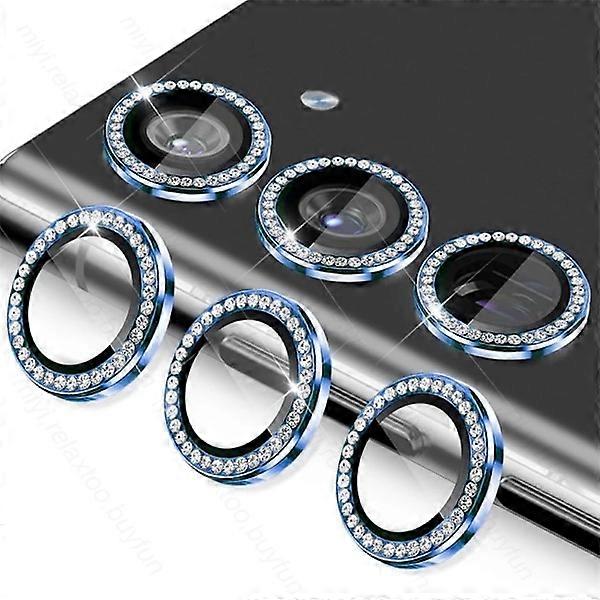 9D Diamond Camera Lens Protector Ring for compatible with Samsung Galaxy S25 S24 S23 S22 Ultra 5G, S25 Plus, S24 FE, S23 Tempered Glass Blue