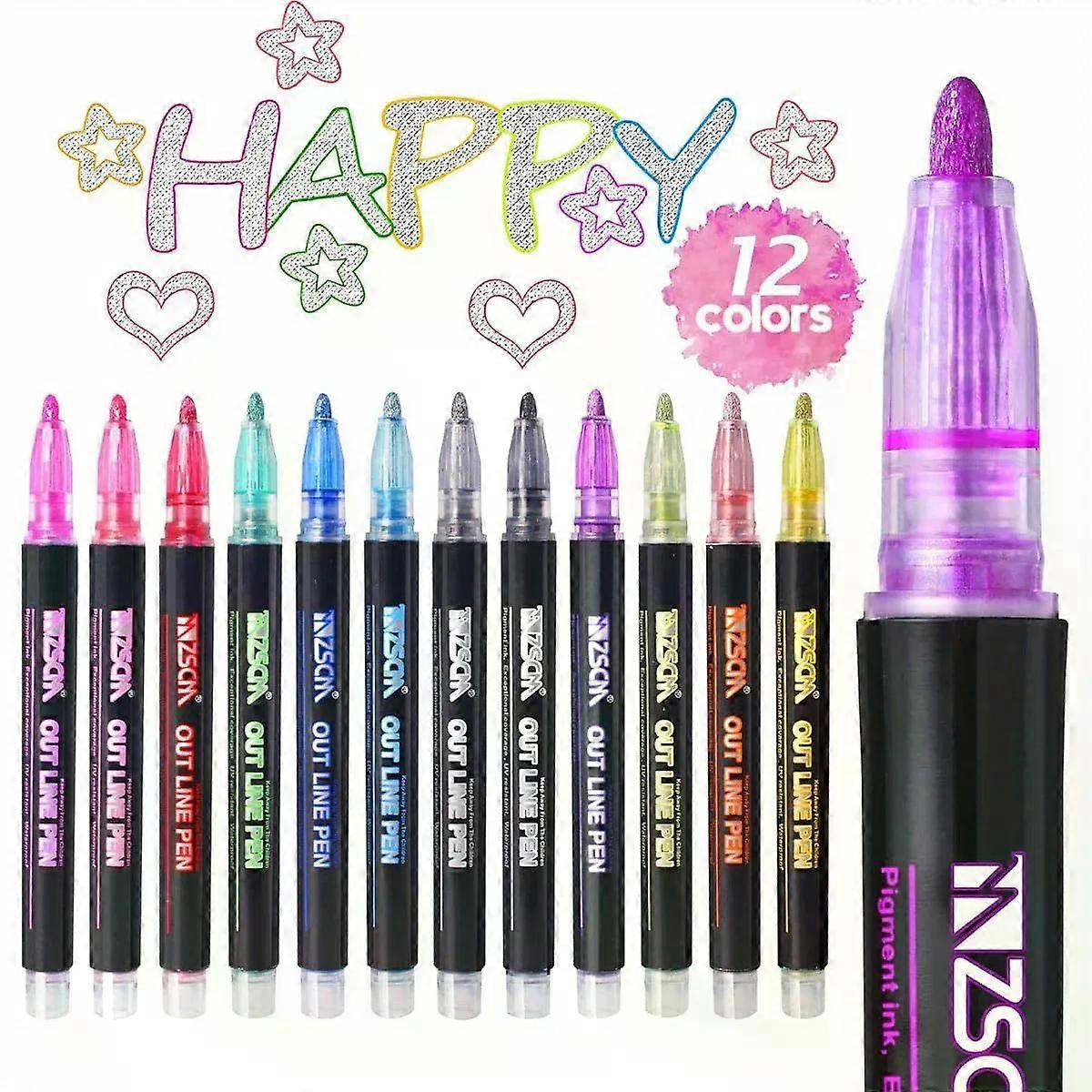 8-48Colors Metallic Color Outline Marker Pen Kawaii DIY Hand Account Graffiti Outline PenOffice Culture and Educational Supplies