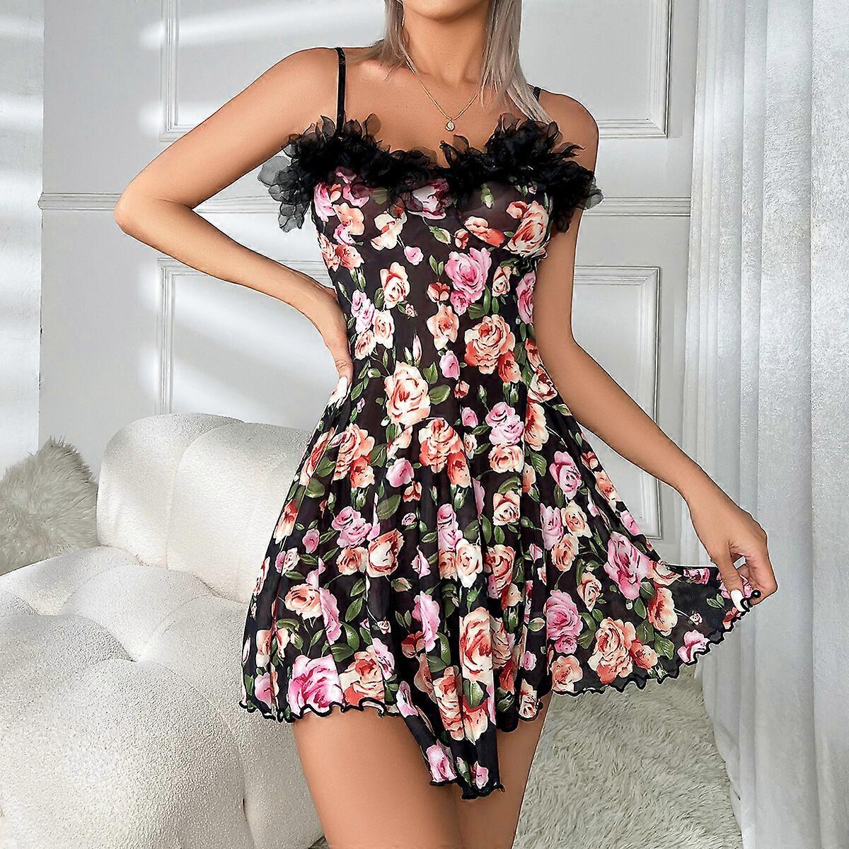 Sexy Lingerie for Women Babydoll Sheer Chemise Sleepwear Floral Dress Nightwear
