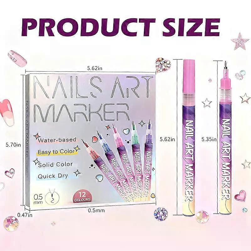 3D Nail Art Pens DIY Set 12 Colors Nail Marker Pens Graffiti Dotting Drawing Painting Liner Pen Quick-Drying Acrylic Paint Pen