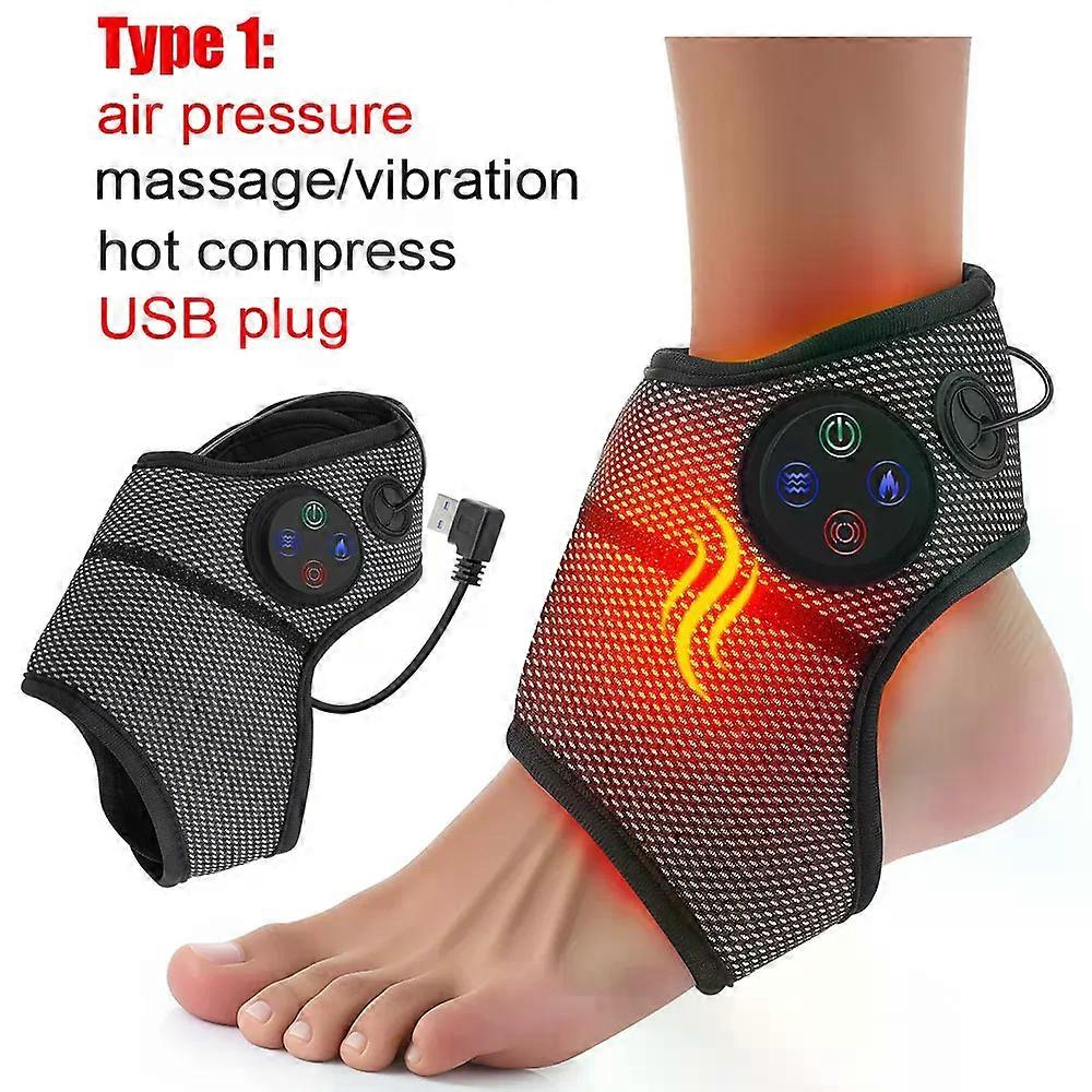 Specifications Is Batteries Included:Yes High-concerned chemical:None Electronic:Yes Certification:CE Application:LeG Model Number:Ankle Massager Material:Composite Material Size:Medium Brand Name:PASTSKY Origin:Mainland China Item Type:Massage & Relaxation Feature 1:Electric Ankle Foot Massager Feature 2:Vibration Hot Compress Massage Feature 4:Feet Brace Massager Feature 5:Multifunctional Ankle Massager Material:ABS + Cloth Color:Black & Grey Heating Temperature:40℃~60℃ Air Pressure Intensity:Soft, Strong Timer:15MIN Extension Cable Length:1.2M Type 1: Electric Air Pressure Foot Massager Features 1. Intelligent air pressure massage can effectively relax the muscle and nerves on acupuncture points around yourfootto relieve muscle fatigue 2. Soothing constant temperature hot compression function can speed up blood circulation, also can help warm your footfor improved comfort. 3. High frequency vibration massage can effectively activate skin cells metabolism to relieve the discomfort of your ankleand foot for strengthened health. 4. Simple button control allows you to switch vibration modes, increase heating temperature and adjust air pressure intensity according to your demands. 5. Comes with a USB cable which can support 3 power supply methods: one is to connect to a 5V/2A power bank with unlimited capacity, one is to connect to a 5V/2A adapter to plug in, and another is to connect a 5V/2A car interface. 6. Suitable for people who suffer from foot discomfort caused by long time standing or walking. Specifications Condition: 100% High Quality and Brand New Material: ABS + Cloth Color: Black & Grey Power: 10W Heating Temperature: 40℃~60℃ Air Pressure Intensity: Soft, Strong Vibration Mode: Interval Vibration, Pulse Vibration, Steady Vibration Timer: 15MIN Extension Cable Length: 1.2M Size: Approx. 33*25*2.5cm CAUTION: 1)Be careful to use the highest heating for long time to avoid hurting your skin. 2)It is prohibited to use the product when sleeping. 3)Please wipe the surface of product. Do not immerse the product in water to clean. 4)Not suitable for people: skin with thermal allergies; unable to take care of themselves; Doctor warning. Package Included: 1* Ankle Massager 1* Extension Cable 1* User Manual Type 2: Hot Compress Vibration Foot Massager Features: 1. Target ankle fatigue effectively with this portable foot massager. Its three heat settings (48°C, 53°C, 58°C) deliver warmth for maximum comfort and relaxation. 2. Choose from three rechargeable massage intensities: First level (daily care), Second level(sports recovery), and Third level (ankle discomfort relief) – tailored to your needs for a personalized experience. 3. The heated ankle wrap features a 15-minute auto shut-off timer, preventing overuse and ensuring safe, worry-free sessions. 4. Enjoy effortless, cordless control thanks to an intuitive touchscreen interface. The LED display of this ankle massager shows the heating temperature and vibration level in real time. 5. Adjustable straps securely fit the heated wrap on either foot, providing reliable ankle support for both left and right users.