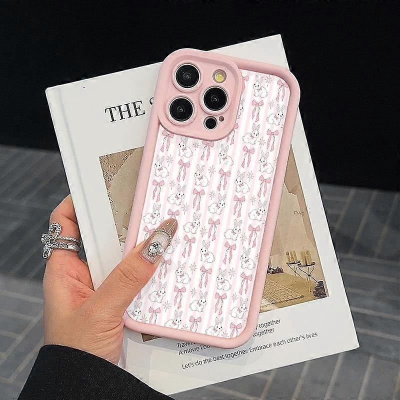 Cute Bowknot Rabbit Pattern Phone Case, Decorative Phone Protector Cover, Phone Accessories Compatible with iPhone 11 12 13 14 15 Pro Max, C
