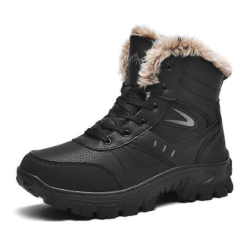 Men's winter waterproof and snow-resistant high-top fleece-lined warm cotton boots, plcom size outdoor high boots with thick soles.