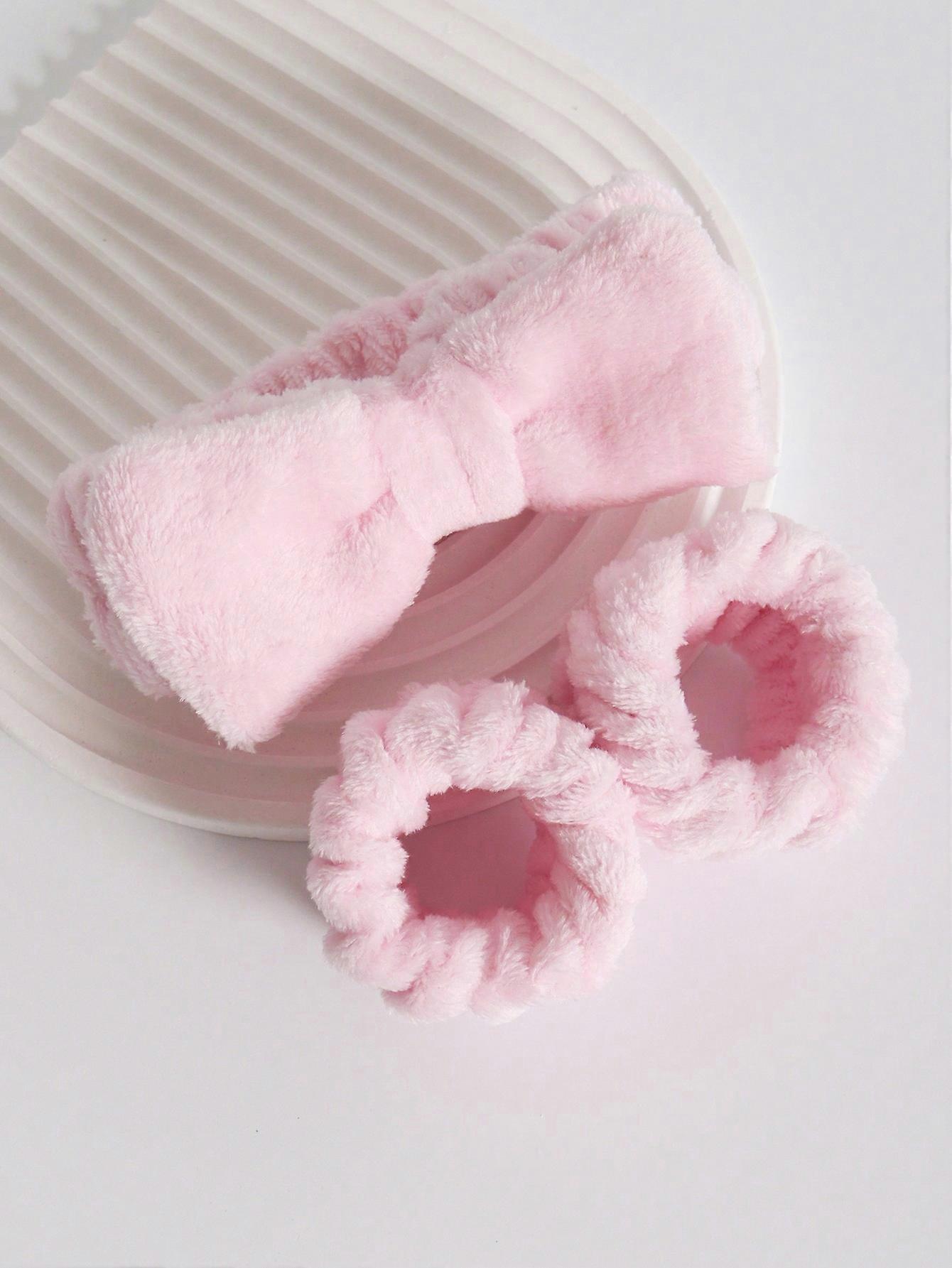 Hair Tie Wrist Strap Set For Women's Face Washing, Coral Fleece For Water Absorption, Anti Wetting, Exercise, Sweat Absorption