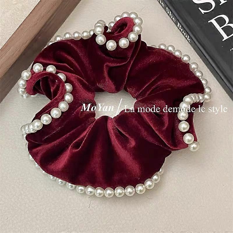 fashion red velvet scrunchie for women big hair rubber band girl elastic pearl hair tie oversize hair rope black giant scrunchie
