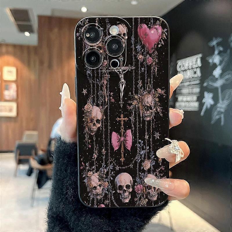 Skull Pattern Phone Case, Decorative Phone Protector Cover, Phone Accessories Compatible with iPhone 16 15 14 13 12 11 Pro Max, Casing