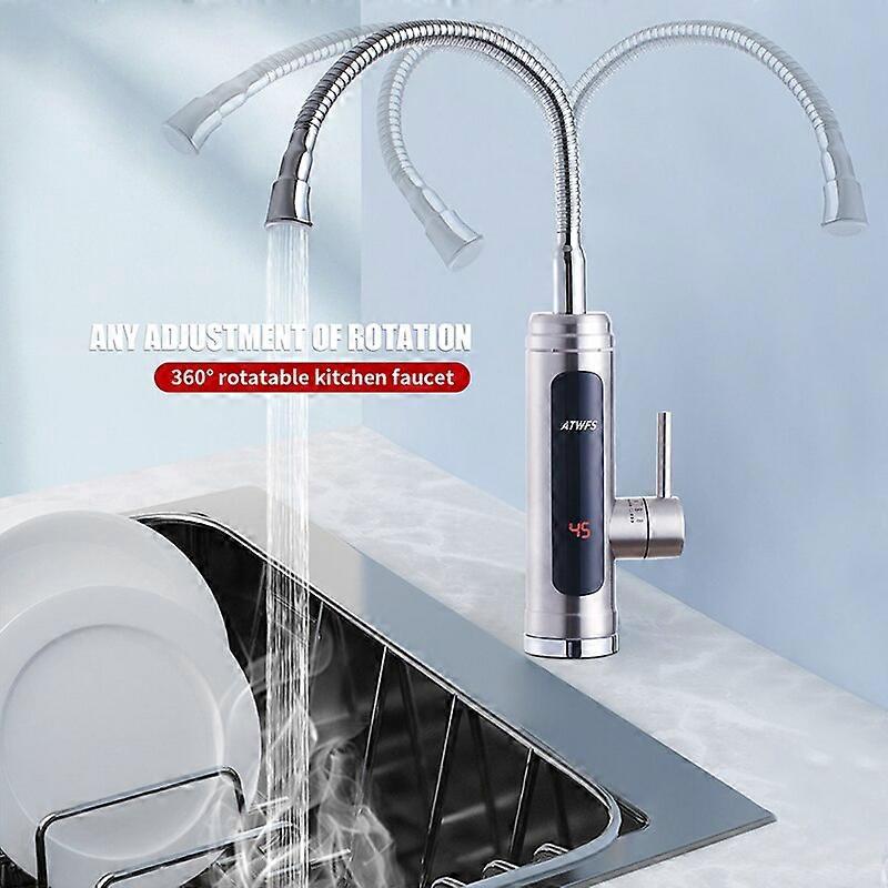 ATWelasticity-Robinet chauffe-eau ��lectrique instantan�� sans r��servoir, 220V, avec coque en acier inoxydable, pour la cuisine