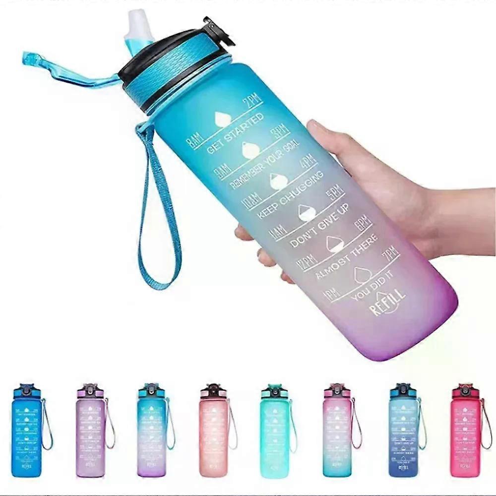 1/2Pcs 1000 Sports Water Bottle with Time Scale Gradient Color Leakproof Gym Water Bottle for Outdoor Travel Fitness Cycling