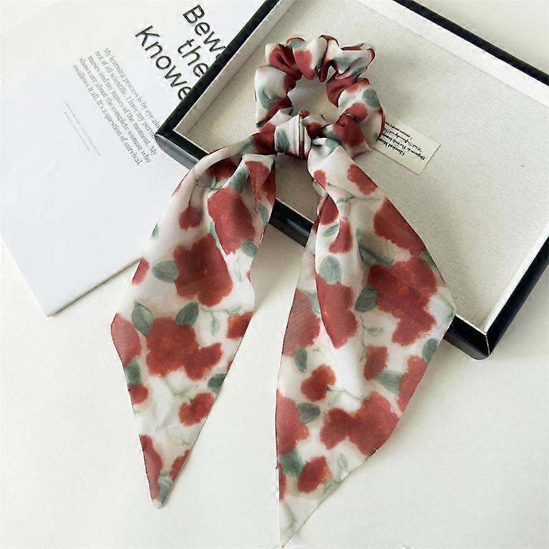 Summer Fashion Floral Tie Dye Chiffon Hair Ribbon For Women Beach Elastic Girls Scrunchies Ponytail Hair Ties Hair Accessories