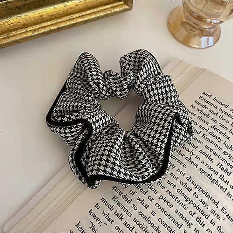 Korean Houndstooth Fabric Large Elastic Hair Bands Autumn Elegant Plaid Scrunchies Girls Casual Daily Headwear Hair Ties Ropes